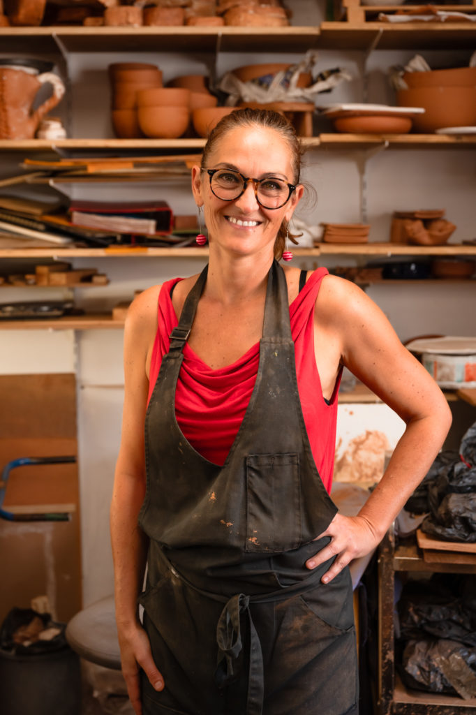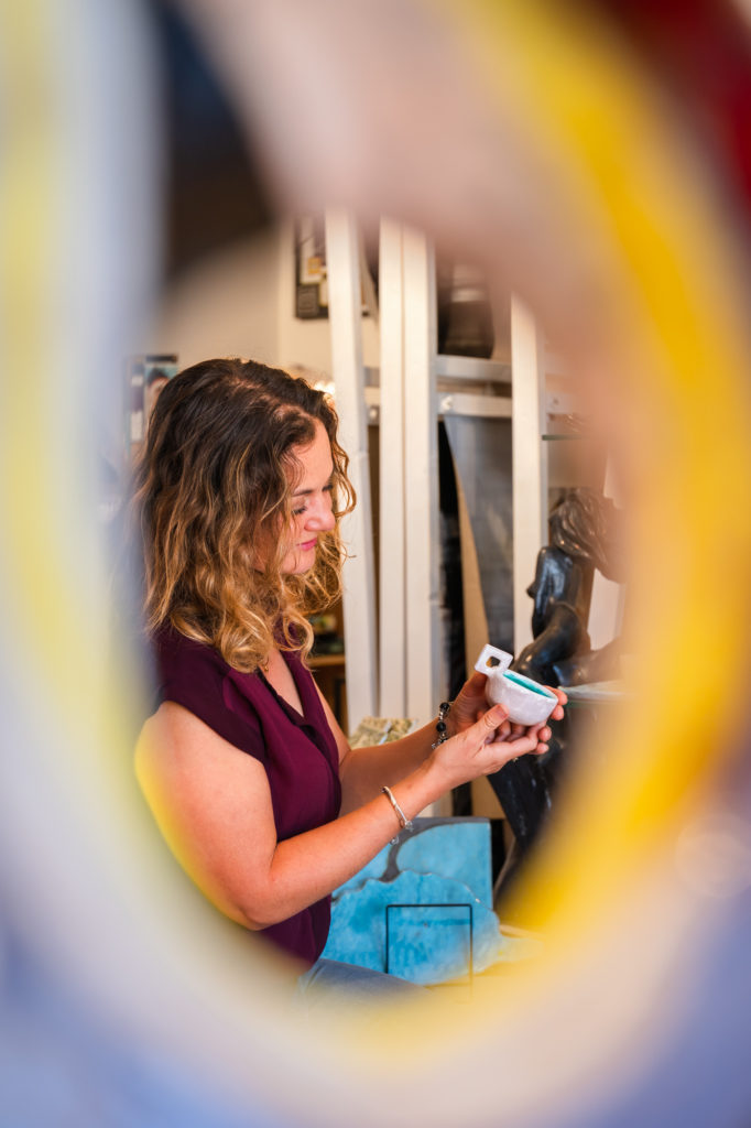 Son atelier est un petit univers à part, plein de pièces ultra originales, décalées, très créatives : visages stylisés, silhouettes libres, formes sculpturales et couleurs joyeuses. C’est une céramique profondément artistique, qui raconte une histoire à chaque pièce.