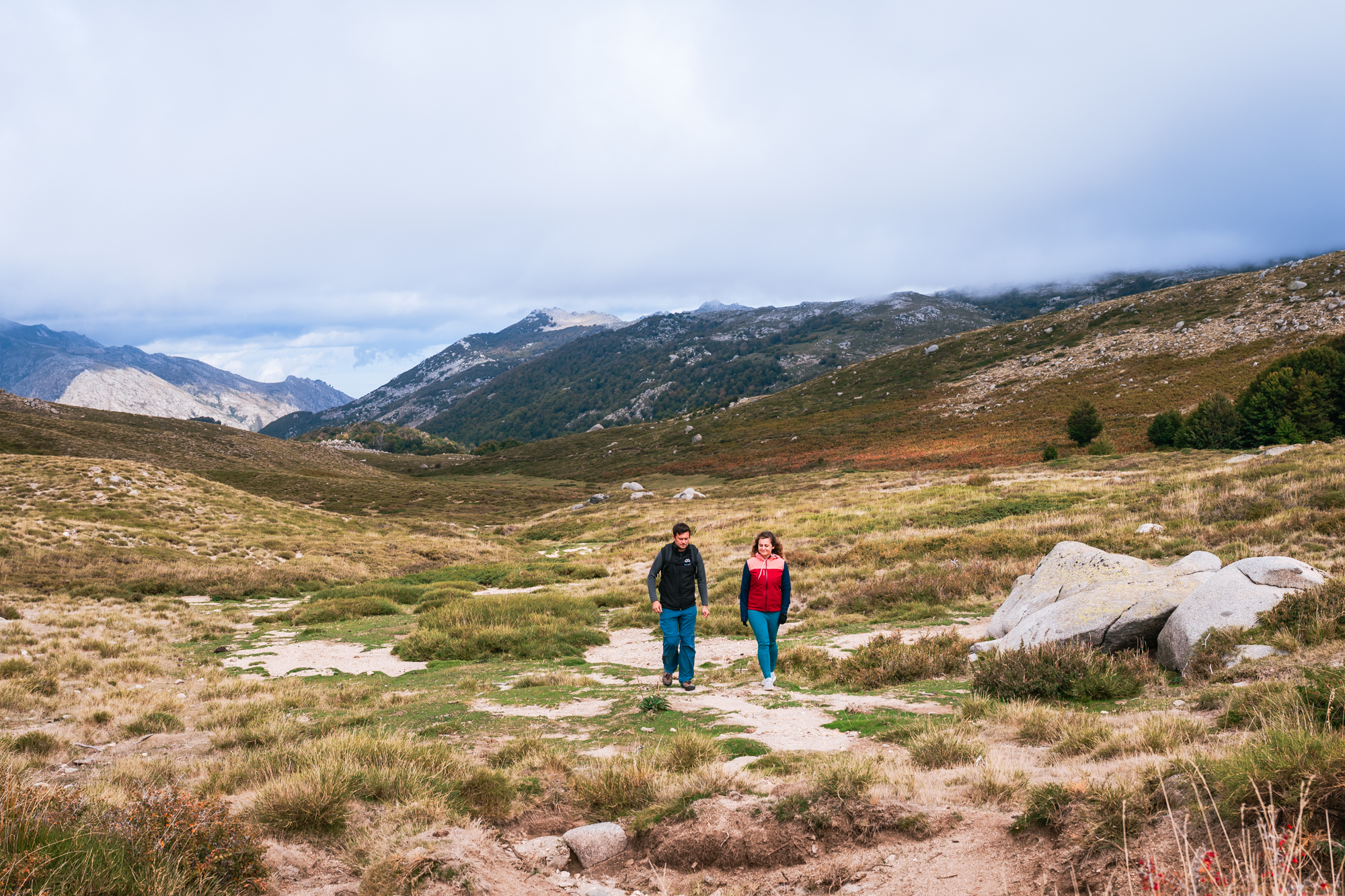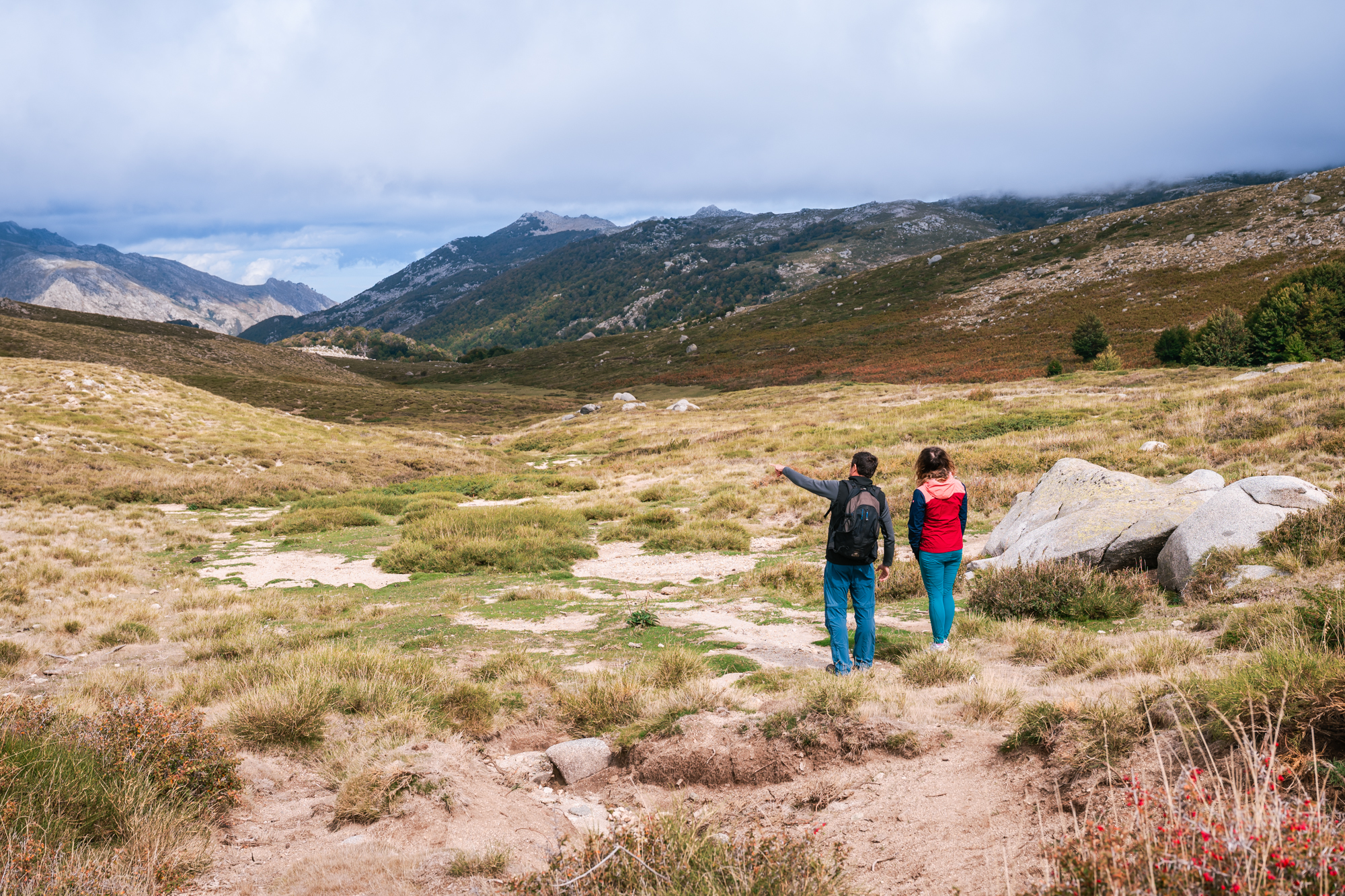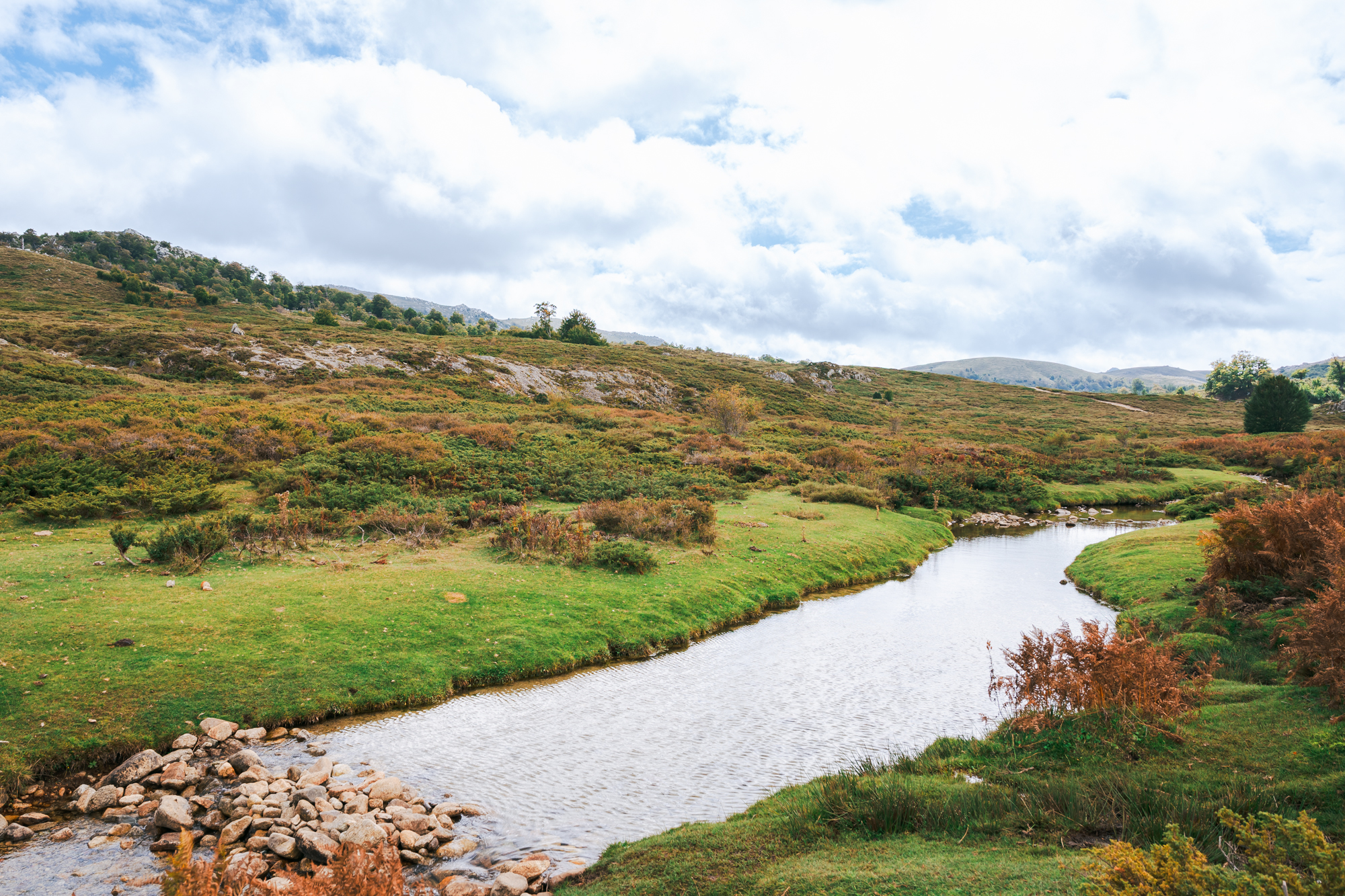 Quitter le littoral pour rejoindre le plateau du Cuscionu, c’est changer de monde. À pied ou en VTT avec Mountain E-Bike, qui propose des locations de VTT de qualité avec assistance électrique, on avance au milieu d’un paysage qui me rappelle presque l’Ecosse, tant l’automne le nimbe d’une aura mystique et druidique. Au milieu des grandes hêtraies aux troncs noueux, les fougères sont roussies par la saison, et les pozzines (ces tapis d’herbe spongieuse traversés de filets d’eau, typiques du plarteau) me fascinent par leur texture aqueuse et presque onctueuse. J’admire les étendues rousses en rêvant d’itinérance, de grande randonnée. Le plateau du Cuscionu est l’un des plus beaux tronçons du GR20, et probablement l’un des plus singuliers : un plateau de montagne boisé, sauvage, habité d’animaux en liberté.