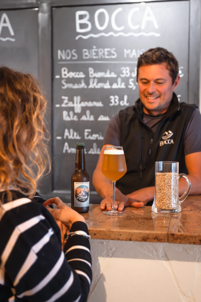 Si vous préférez au vin la bière, rendez-vous chez Sylvain à la brasserie Bocca. Je vous en parle longuement plus haut, à travers l’expérience « de la source à la bière » : cette bière est brassée à l’eau des montagnes corses !
