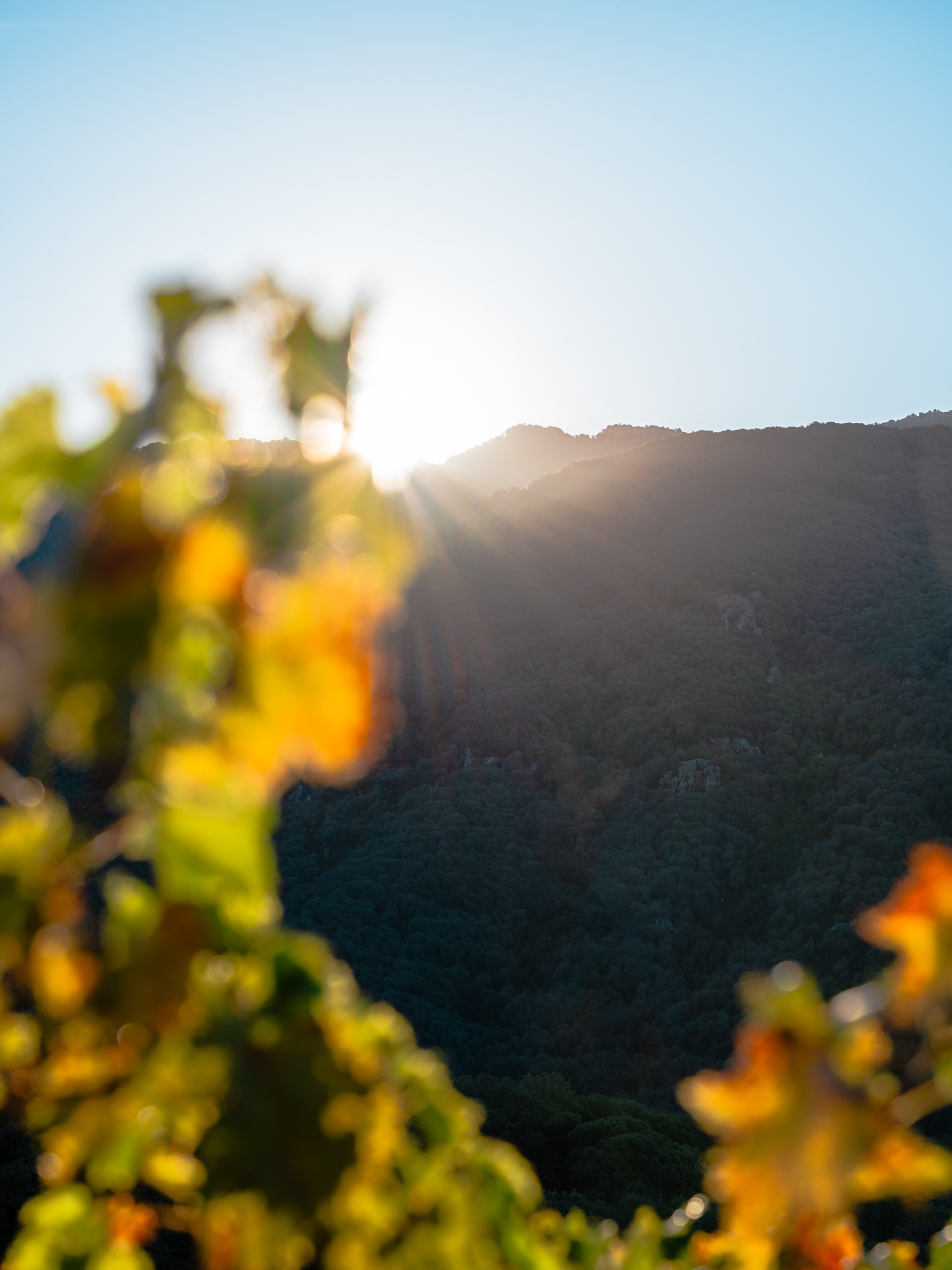 Au milieu des vignes baignées de lumière, nous rejoignons avec notre panier de petit chaperon rouge une nappe dressée rien que pour nous, couverte de charcuterie corse, fromage, fruits frais, pain croustillant…