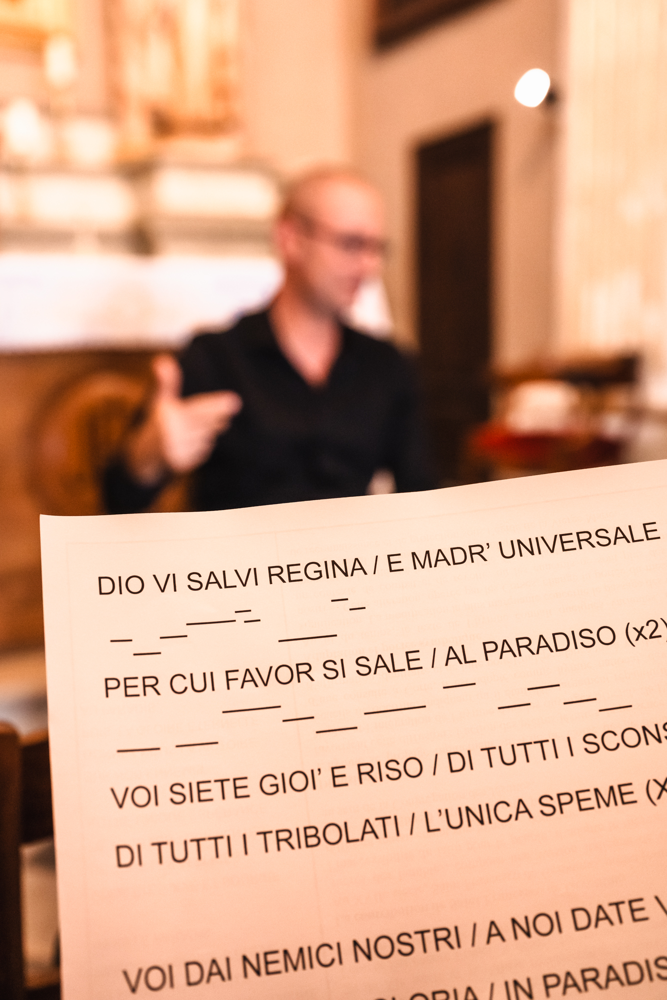 Nous apprenons ensemble le chant corse le plus célèbre, véritable hymne corse, le Dio vi salvi Regina. Nos voix s’unissent, hésitantes mais sincères, et le résultat nous surprend. C’est beau.