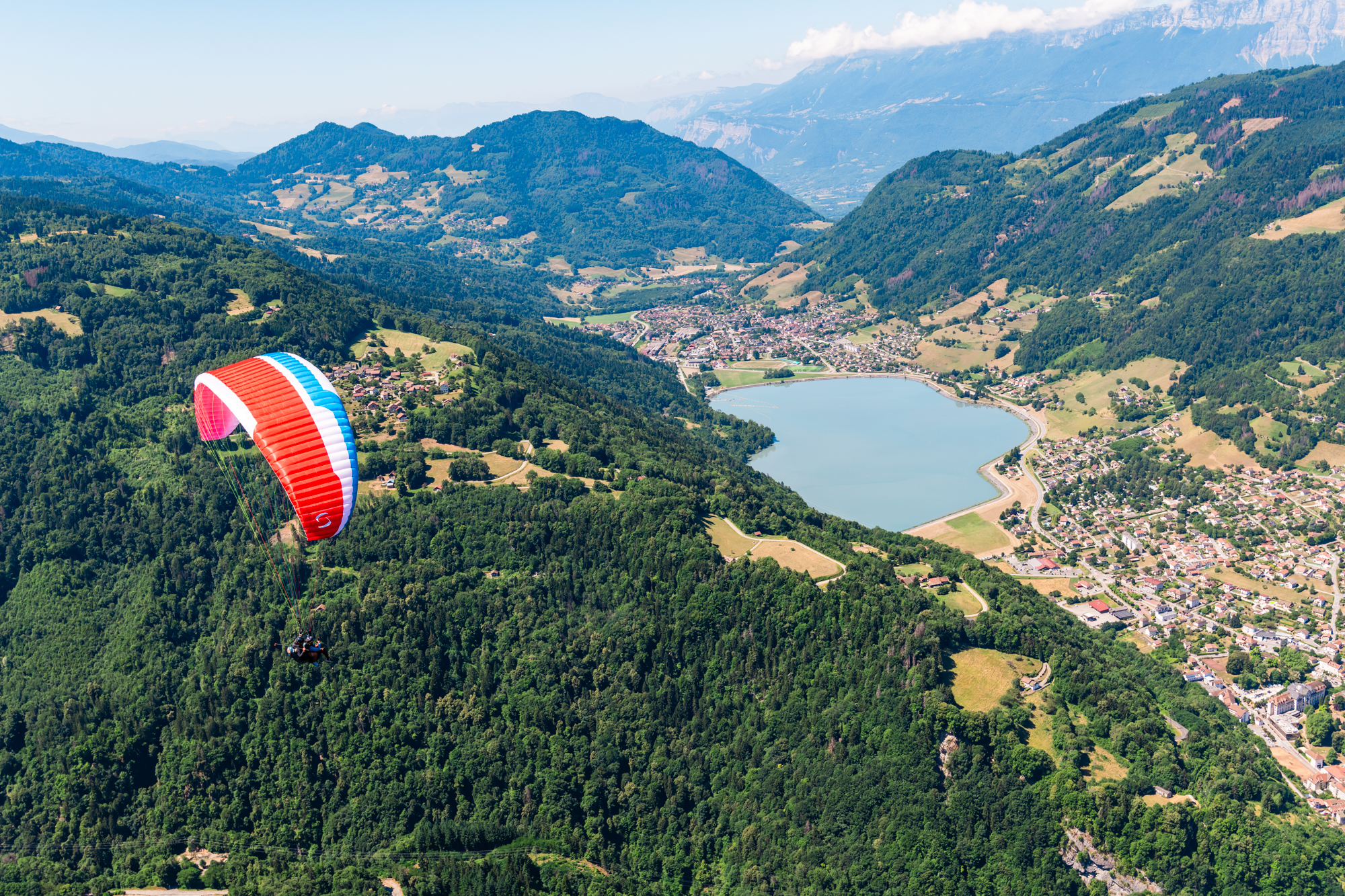 Sacha et son collègue Thomas, deux moniteurs adorables et passionnés, nous donnent rendez-vous au bord du bassin du Flumet. Nous montons avec eux jusqu’au Collet d’Allevard, où est situé le très beau décollage panoramique. L’envol est doux et facile, et nous voici tournoyant face aux sommets du Grésivaudan, entre Belledonne et Chartreuse, au-dessus des forêts de sapins et au milieu des cimes. Surprise : Sacha et Thomas sont spécialisés dans les acrobaties chorégraphiées ! Ils nous proposent une surprise, et nous acceptons – voilà qu’on se pose en plein vol sur la voile du collègue, comme sur le tapis volant d’Aladdin. Un moment génial et vraiment unique ! On se pose ensuite au bord du bassin du Flumet, heureux de cette virée aérienne. Un moment fun, décalé, pour profiter à fond de l’été.