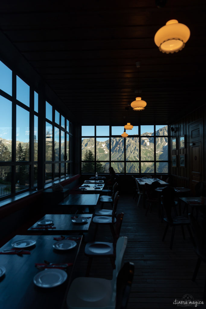 Ce n’est plus un refuge rustique comme autrefois, c’est un hôtel à l’élégance sans âge des lieux qui seront toujours à la mode. On y mange sous une grande verrière face aux montagnes magiques.