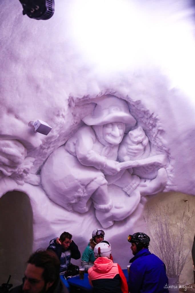 J’ai passé quelques heures à Avoriaz lors de mon exploration du domaine skiable : je suis allée visiter l’igloo d’Avoriaz, où on peut boire un verre, manger ou même dormir dans un décor fantasmagorique, et j’ai mangé de délicieuses pâtes aux morilles (typiquement savoyard !) dans le resto montagnard Chez Flo.