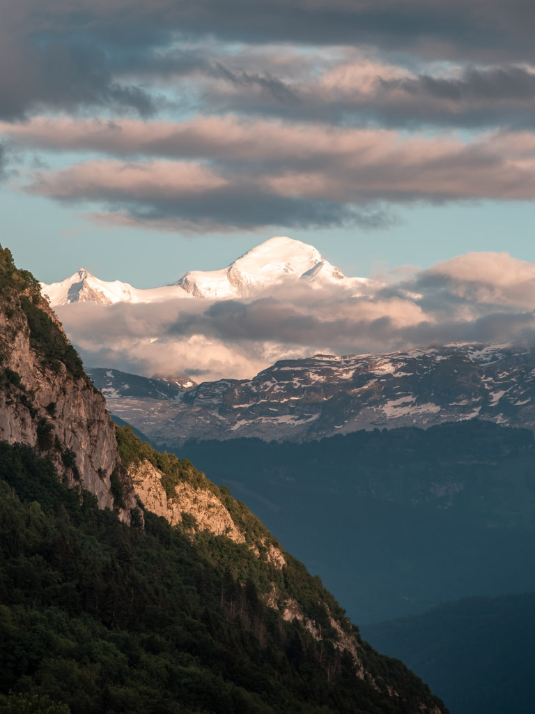 Les hauteurs de Praz de Lys Sommand offrent un exceptionnel balcon sur le massif du Mont Blanc. Face à nous, nous voyons se dessiner la plus haute montagne des Alpes et ses colossaux voisins, le Dôme du Goûter et son dos de neige, la pyramide parfaite de l’Aiguille Verte, les grands miroirs blancs du Mont Maudit.
