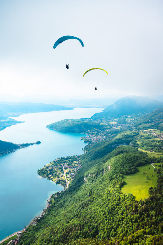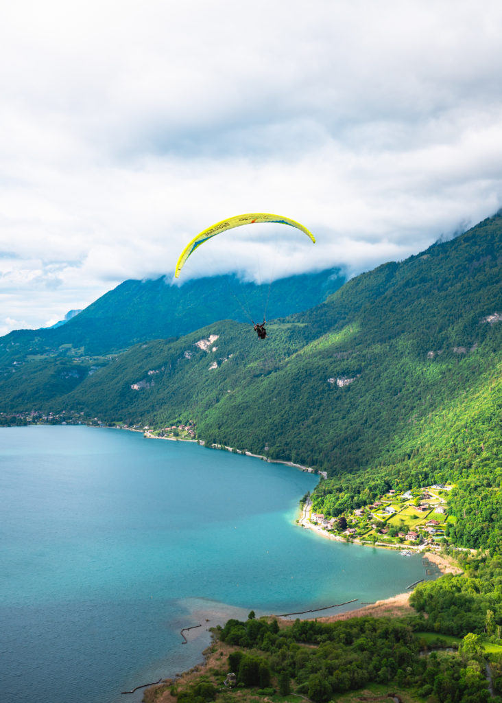 C’est une activité emblématique du lac d’Annecy, à raison : le vol en parapente est une expérience à couper le souffle. On décolle du mythique col de la Forclaz, d’où le lac tout entier s’offre à la vue tel un serpent scintillant. Avec l’école Espace 3D Parapente, réputée pour la qualité de ses stages et de ses vols, nous nous sommes envolées au-dessus de l’azur du lac et des crêtes des montagnes environnantes. On frôle la Tournette et les Dents de Lanfon, le regard porte jusqu’au Mont Blanc, et c’est d’une beauté inouïe. Adrénaline, liberté et paysages spectaculaires : une activité inoubliable et incontournable. Je la recommande vraiment à tous, d’autant que non, vous n’aurez pas le vertige en parapente, et vous serez surpris de la douceur des sensations !