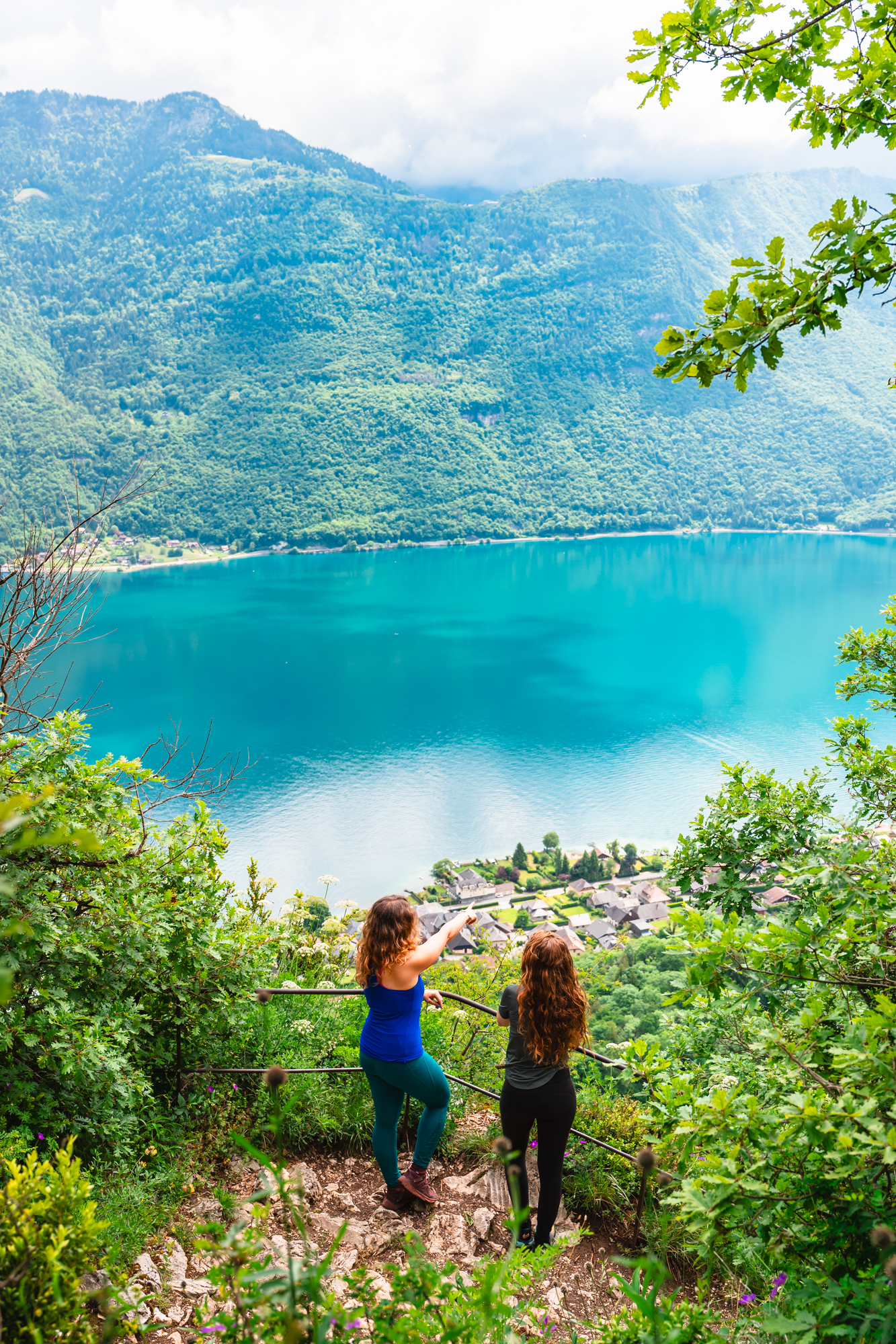 Au point culminant du Taillefer, la vue est magique, un camaïeu de bleu et de vert. Mais mon coup de foudre est pour la vue sur le château de Duingt à la descente : une scène digne d’un conte de fées.