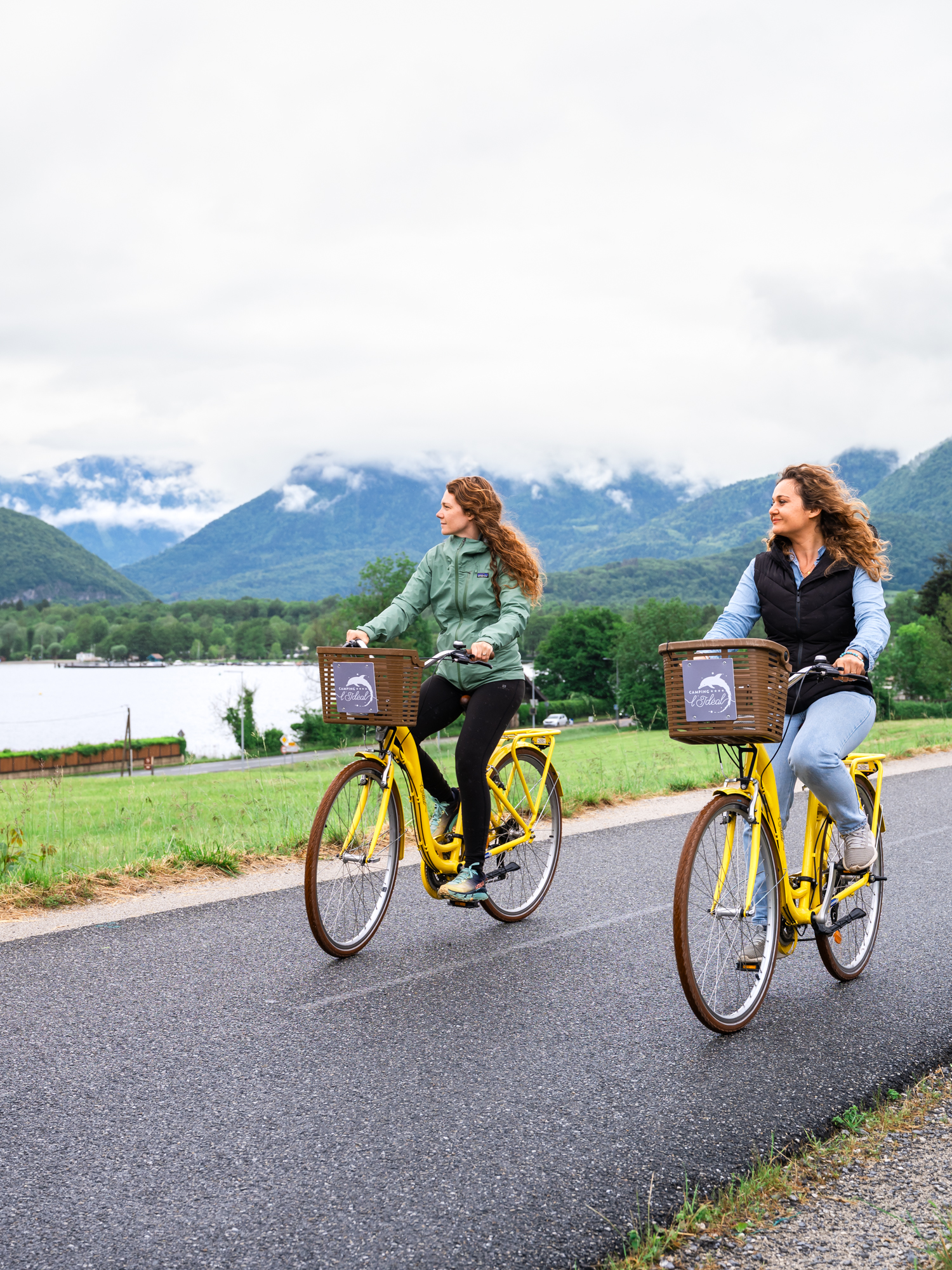 Nous avons loué des vélos directement au camping et rejoint en 5 minutes la voie verte qui fait le tour du lac d’Annecy. Nous n’avons pas fait la boucle complète, mais je sais que c’est un itinéraire superbe, ponctuée de points de vue magnifiques sur les montagnes et le lac. Si vous avez le temps et l’énergie, pourquoi ne pas faire le tour complet du lac à vélo ? Pour notre part, nous n’avons exploré qu’un petit segment, mais l’itinéraire est adapté à tous les niveaux, et permet de découvrir les environs à son rythme.