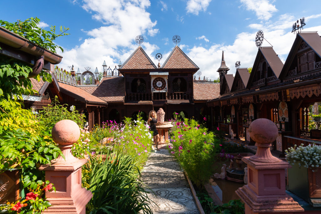 Voulez-vous continuer le rêve bleu, entre mille et une nuits orientales et folies de l’imagination ? Je vous présente les jardins secrets de Vaulx, un petit chef d’œuvre d’art naïf dans le style du Palais idéal du facteur Cheval, tenu par une famille passionnée d’architecture orientale et de fleurs à foison. La déambulation dans ce petit univers fantasmagorique me rappelle un peu Oman, Abu Dhabi ou le Maroc, mais aussi la Sagrada Familia de Gaudi… le tout dans un jardin multicolore et embaumant. Une jolie escapade hors du temps.