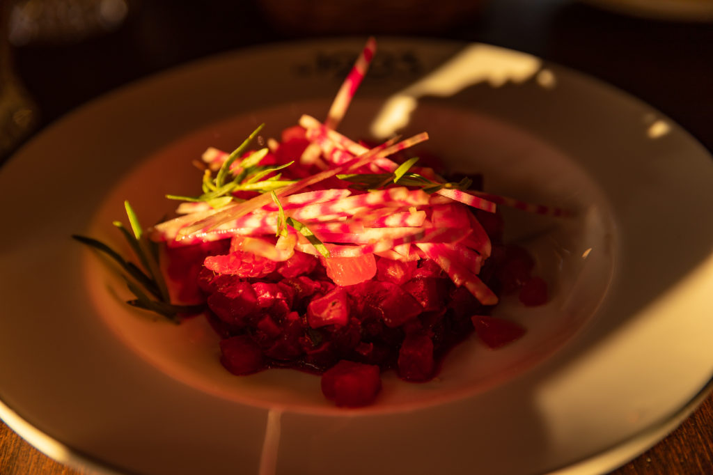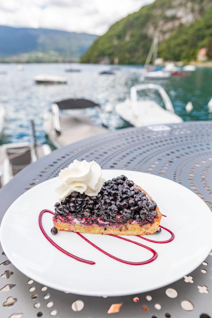 L’Auberge du Père Bise, c’est aussi un restaurant gastronomique étoilé, hélas fermé le soir de notre séjour – mais nous nous sommes régalées pour un tarif plus abordable à la version bistronomique, avec une superbe vue sur le lac d’Annecy au coucher de soleil.