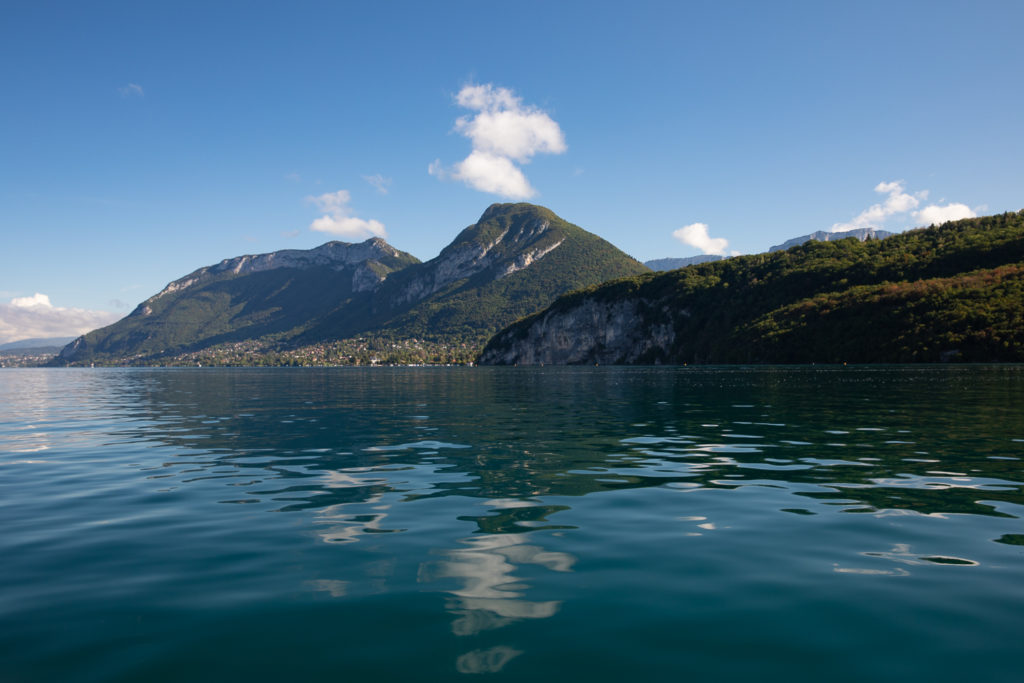 Un moment de magie pure… j’en avais tellement rêvé ! Explorer les moindres recoins de ce lac glaciaire somptueux, dans le calme d’un bateau qui n’appartiendrait qu’à nous… Ce tour du lac d’Annecy en duo, nous l’avons vécu en bateau taxi en faisant appel à l’adorable Bernard de la compagnie Taxi Boat Lac d’Annecy. Nous avons largué les amarres au petit matin… la brume dorée sur la réserve du bout du lac, le château de Duingt trônant au milieu des eaux et les chapelles du village dressées au pied des montagnes comme pour faire convoler clochers et sommets, la mâchoire tranchante des dents de Lanfon au dessus des eaux turquoise, les maisons somptueuses de Menthon-Saint-Bernard où vivent les plus privilégiés de Haute-Savoie, l’entrée de la rivière Thiou à Annecy… tout était un pur enchantement, tout était magie.