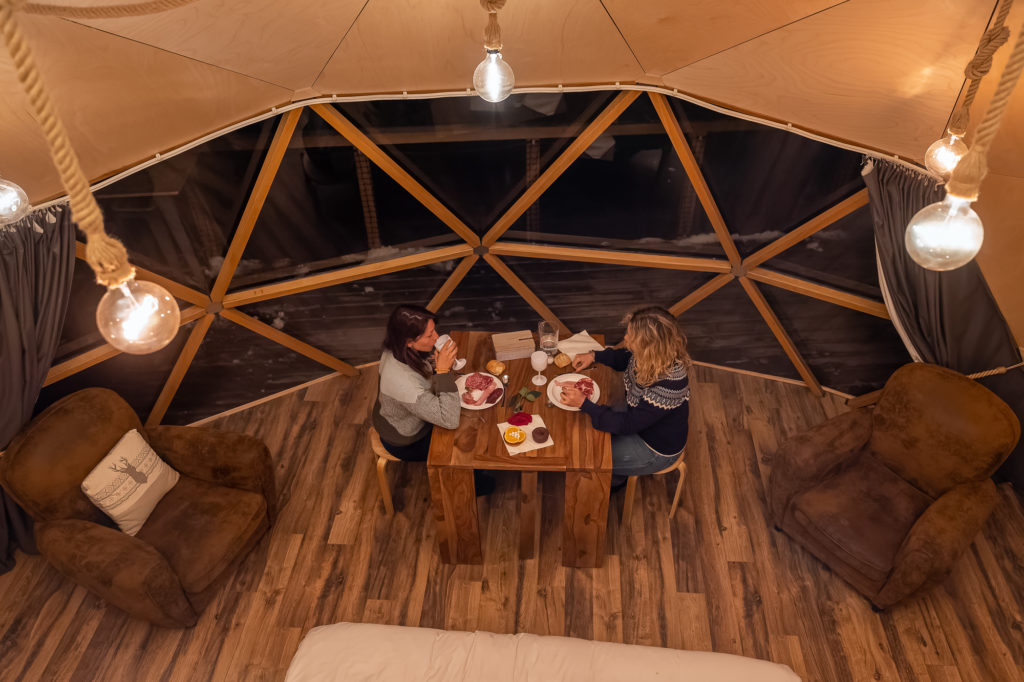 Le dîner et le petit-déjeuner seront directement livrés dans votre bulle, pour que rien ne vous perturbe et vous fasse sortir de votre cocon de douceur. Selon la catégorie de bulle choisie (toutes sont luxueuses, mais certaines sont ultra luxueuses), vous pourrez loger 2 ou 4 personnes, et avoir peut-être une baignoire type jacuzzi avec vue sur les montagnes… Je rêve d’y revenir !