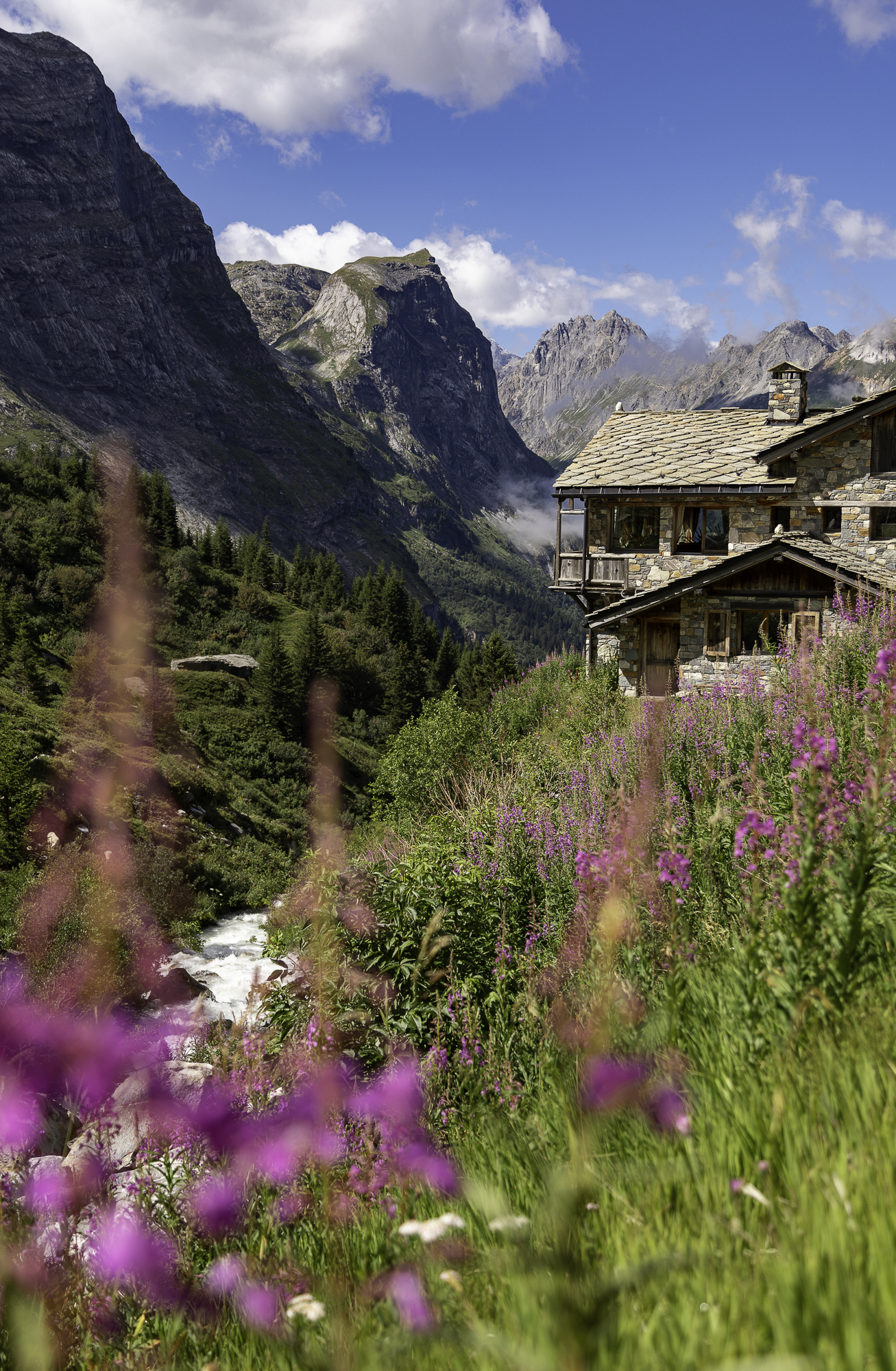 Je suis tombée amoureuse il y a longtemps déjà de Pralognan-la-Vanoise en hiver, et j’avais hâte de le retrouver dans les fleurs de l’été. Souvent surnommé le « petit Chamonix savoyard », en raison de sa situation nichée au pied des plus hauts sommets de la Savoie, il fascine par la couronne de montagnes effilées et photogéniques qui le ceignent, comme la belle Aiguille de la Vanoise (2796 mètres). Si je savais dessiner, Pralognan-la-Vanoise m’inspirerait des images à la Samivel.