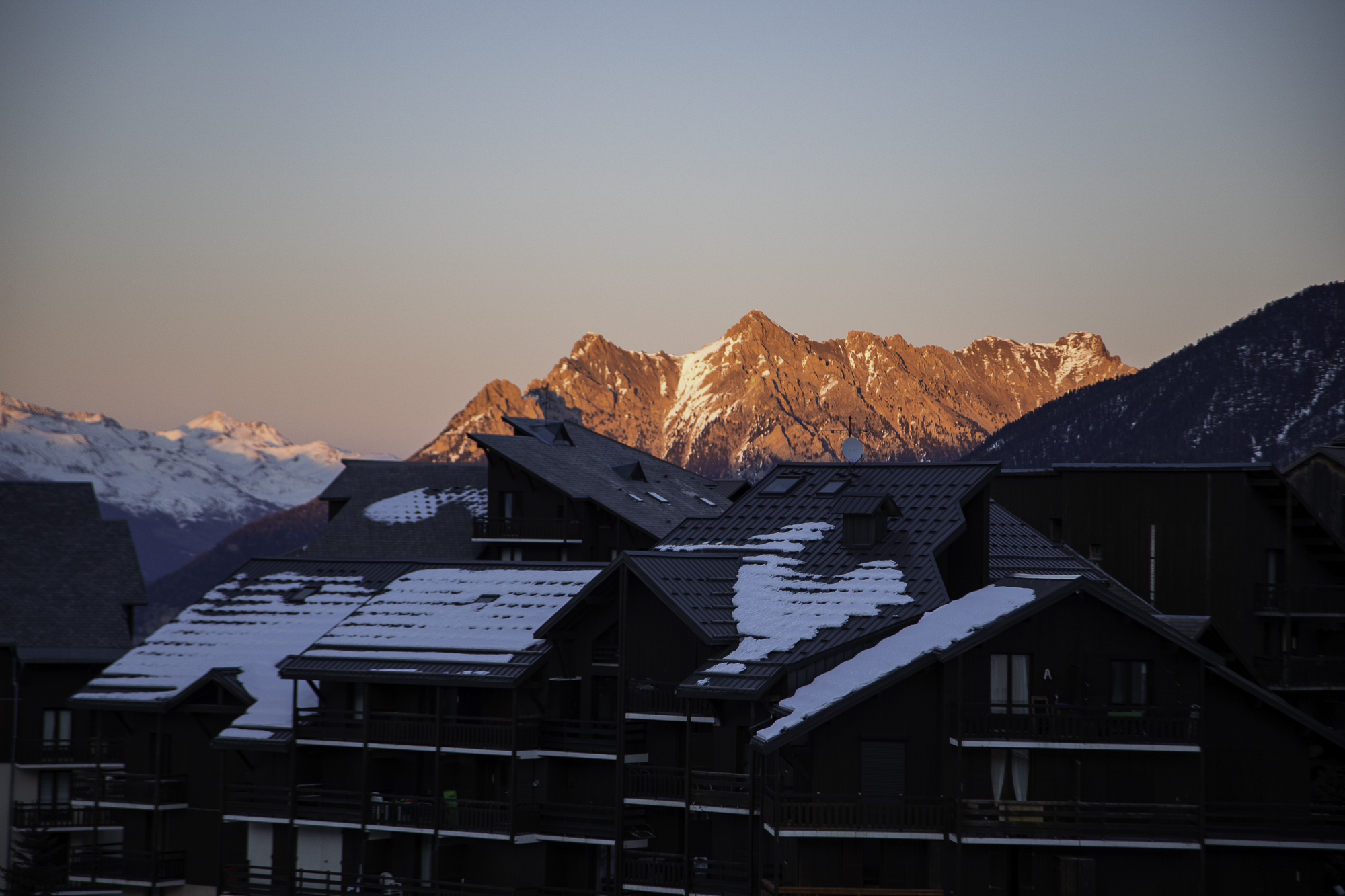 Depuis ma chambre, je regardais les skieurs rentrer dans la joyeuse atmosphère de l’après-ski, je voyais le soleil sortir de derrière les montagnes en buvant un thé chaud.