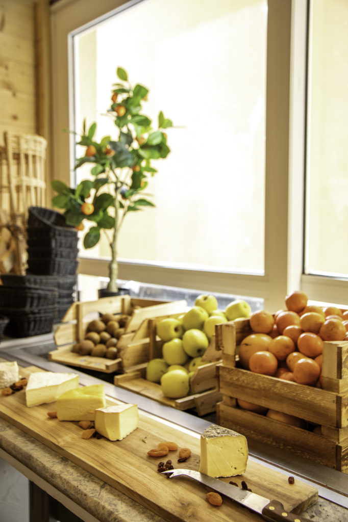 Les hôtels-clubs VLL, Risoul et Réallon, proposent une formule tout compris : trois buffets par jour, matin, midi et soir. A chacun de mes séjours, je suis bluffée : nourrir trois fois par jour plusieurs dizaines de personnes, avec un coût bas, sans sacrifier ni la fraîcheur, ni la qualité, ni le goût, et en valorisant les produits locaux des Hautes-Alpes, les circuits courts et les délices de montagne, cela semble être un défi de niveau olympique, et pourtant les équipes le relèvent toujours haut la main. Les repas sont toujours généreux, variés, avec un vrai choix et des tonnes de produits frais – il y a systématiquement des légumes, des fruits, des crudités, bref, il est tout à fait possible de manger sainement entre deux raclettes et croziflettes. J’ai adoré avoir un extracteur de jus au petit-déjeuner, par exemple !